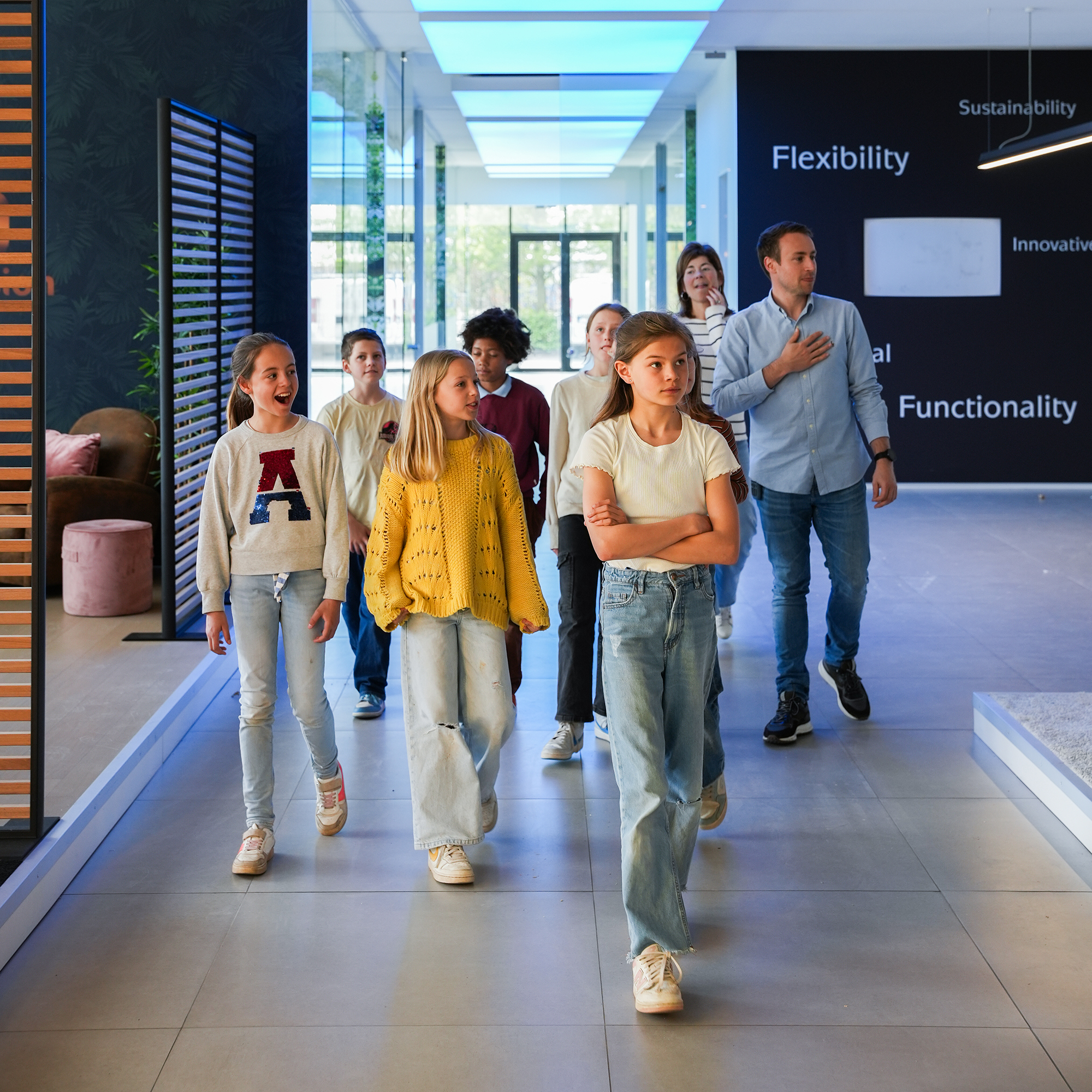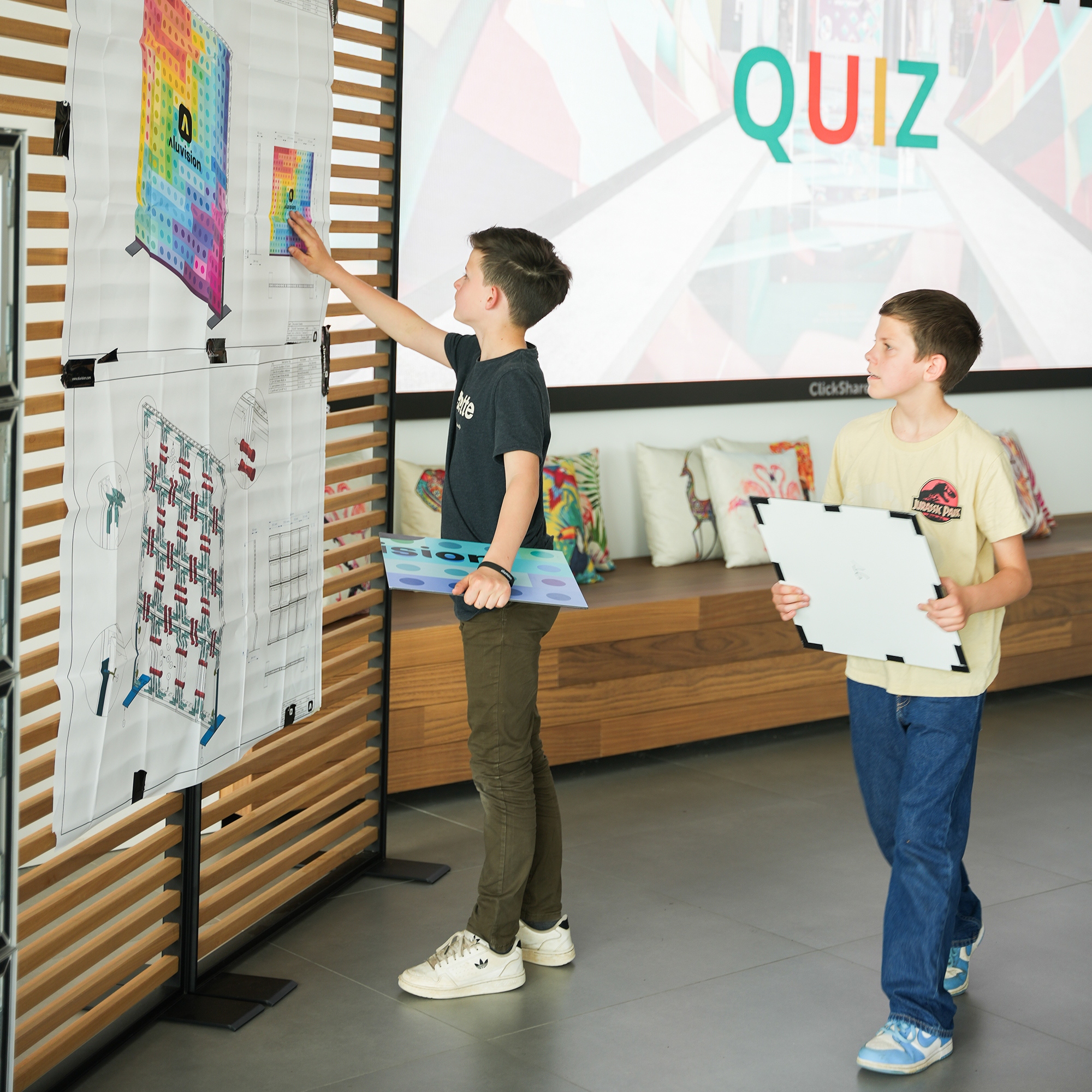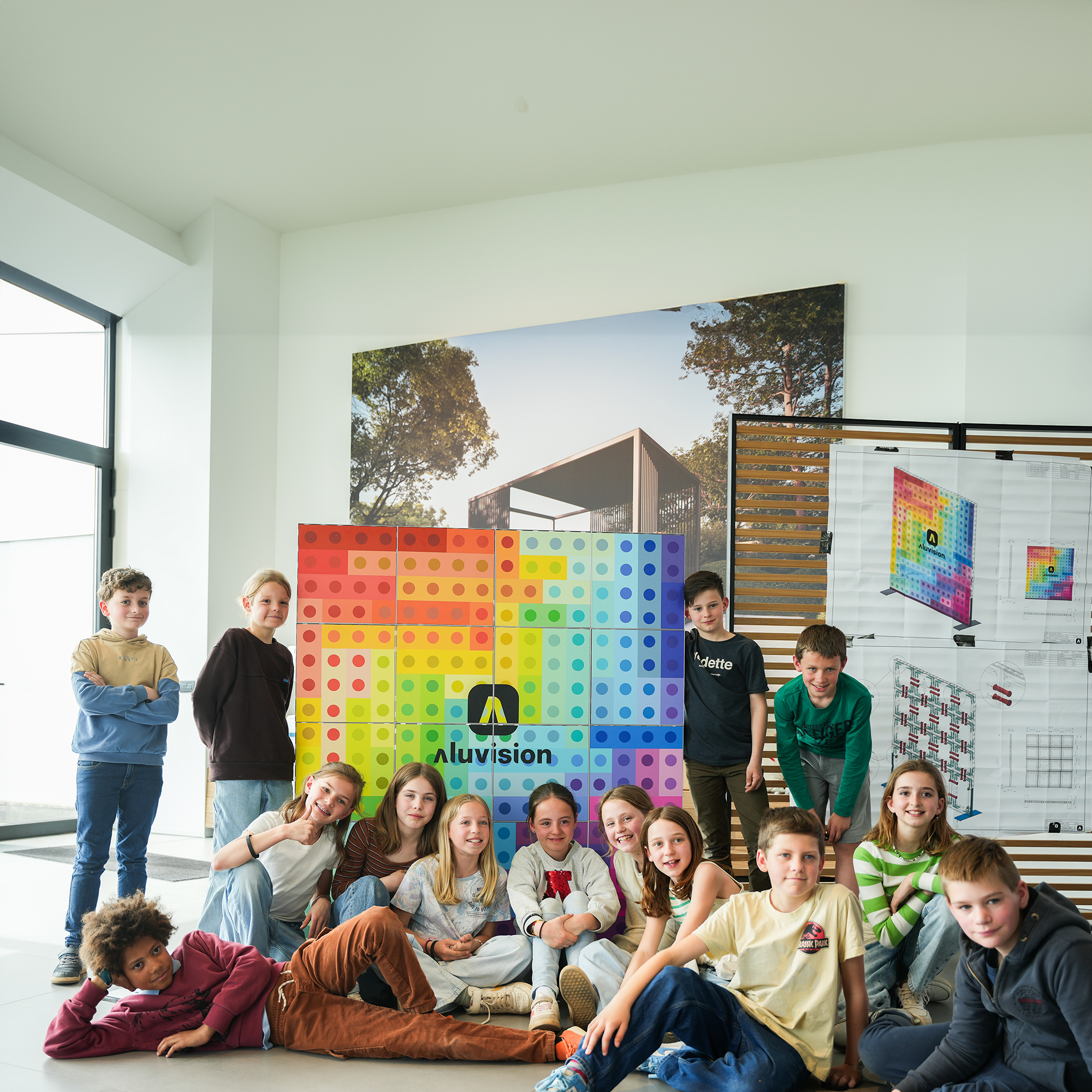 Last week, we had the pleasure of hosting the 5th grade from Zeveren-Vinkt Primary School. The students had an exclusive behind-the-scenes tour – from our offices to production and our showroom. Afterwards, they gained hands on experience with our product and had to combine all their efforts to complete an Aluvision puzzle. Thank you to all students for your curiosity and excitement! .