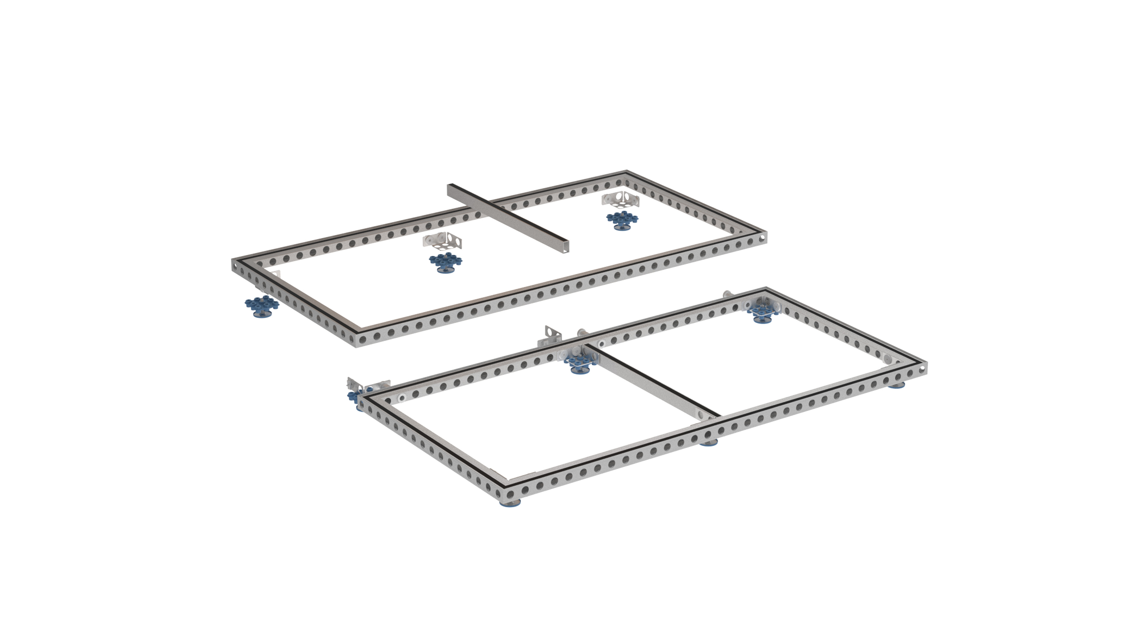 De Omni vloer is een in hoogte verstelbaar vloersysteem dat de basis vormt van een volledige 360° oplossing. Opgebouwd rond de Omni pro frames maakt dit systeem het mogelijk om vloer, wand en plafond op te bouwen uit één en hetzelfde kadersysteem. Maximale ontwerpvrijheid met een minimum aan materiaal.